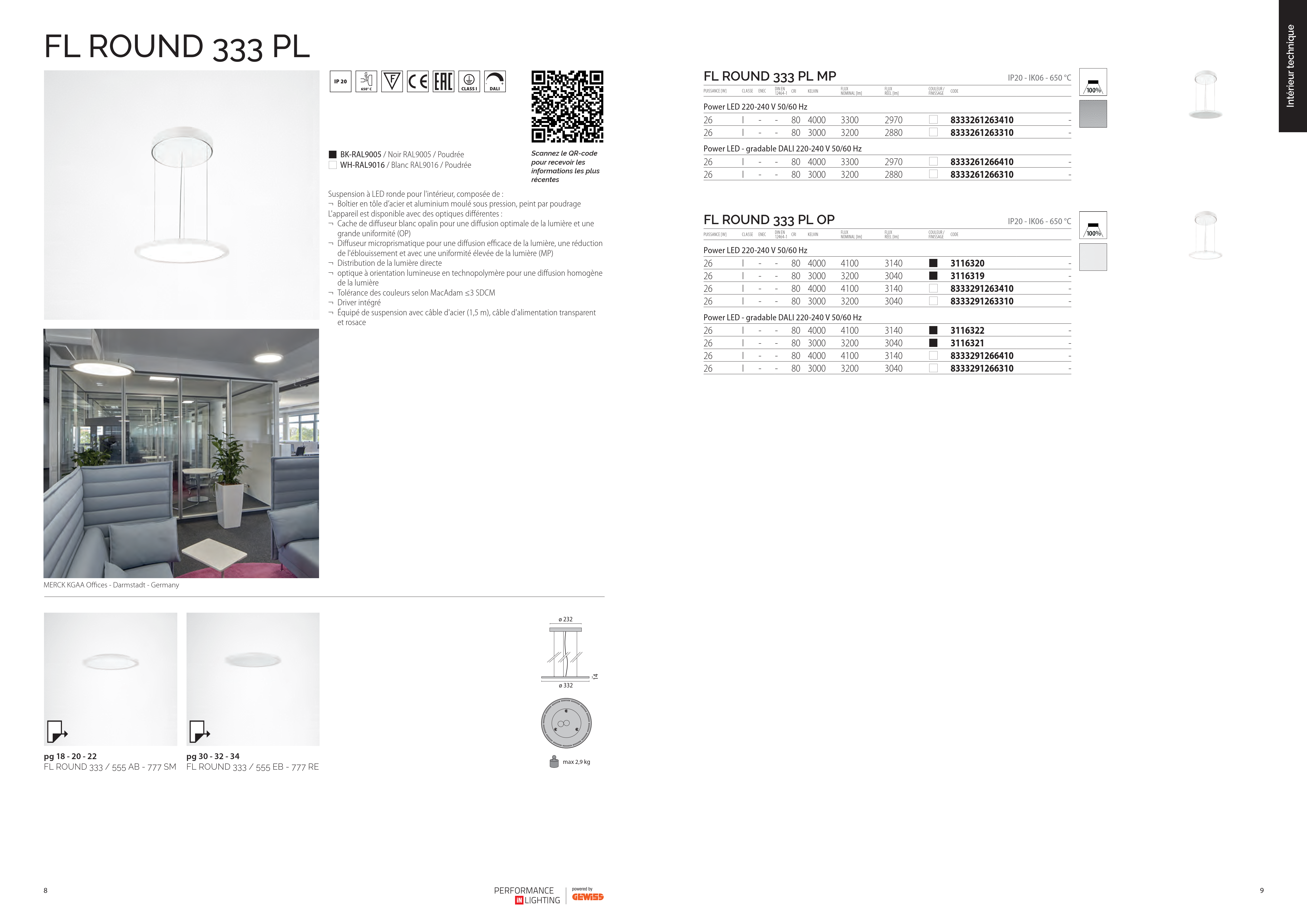 FL R+ 333 PL 8/23 S/A 8TW WH9016 DT8 MP Ø 329mm × 14mm 8 960 120 2700//6500 <25 50000 DALI, DALI-2 FL R+ 333 PL 8/23 S/A 8TW WH9016 DT8 OP