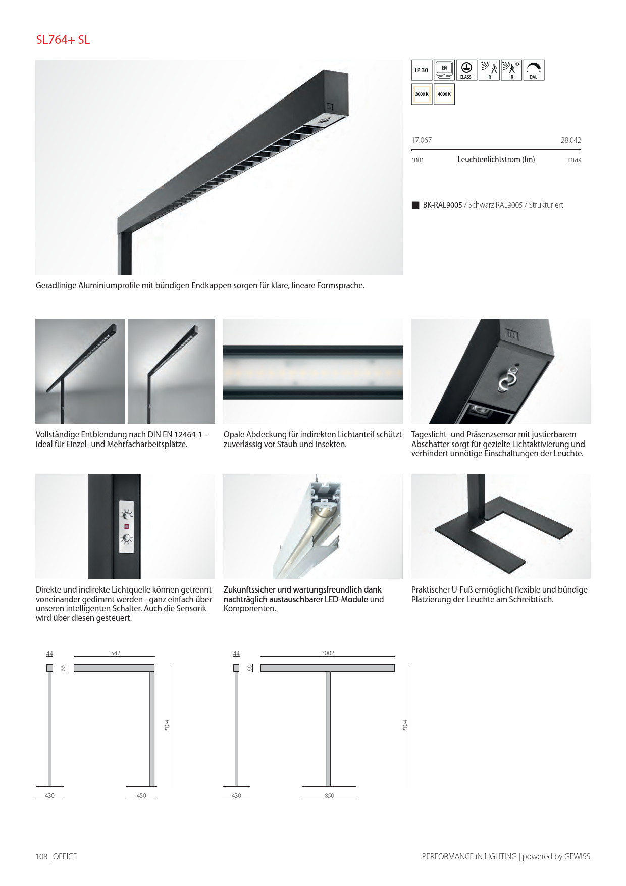 - Blendfreies Licht für Office-Anwendungen nach DIN EN 12464-1
